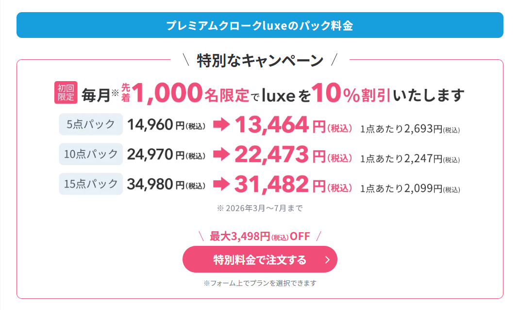 さらにluxeプランは、初回限定・毎月先着1000名限定で10%OFFキャンペーン中。